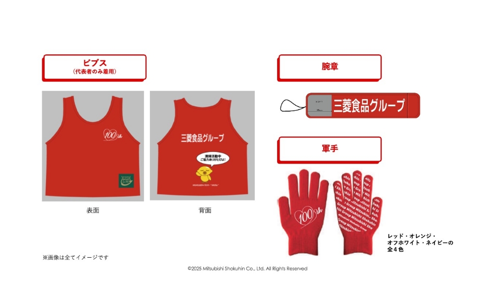 清掃活動には、ビブス、腕章、軍手などのオリジナルグッズを着用して参加します!