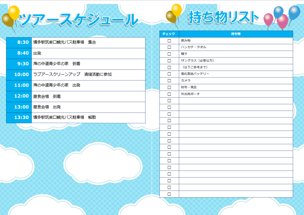 三菱食品九州支社では、「ラブアース・クリーンアップ」への参加を通じた環境美化活動(清掃活動)を主目的に、昼食付、家族参加大歓迎のバスツアーを実施しました。