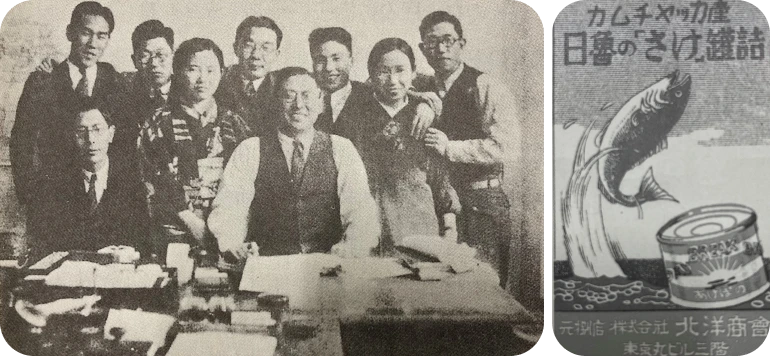 (株)北洋商会の商号のもとに旧三菱商事(株)の100%出資による「あけぼの印」鮭缶詰の総代理店として発足しました。東京の一等地の丸ビルを出発点とし、業界のみならず経済界の注目を集めました。