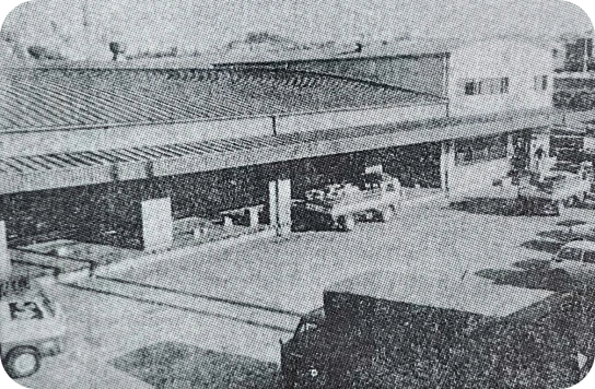 1964年(昭和39年)9月、第一号配送センター(横浜倉庫)が、京浜急行谷津坂駅前に誕生しました。3,010㎡の敷地に2,177㎡の鉄骨造り平屋建てで、倉庫・冷凍室・常温室を完備していました。当時日本の食品流通業界で初めて採用された、米国式の平屋造りの大型物流倉庫でした。