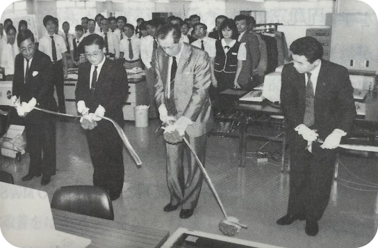 社員12名、資本金19万5千円の小さな菓子専業卸の出発でした。「1にスマイル(SMILE)」「2に誠心誠意(SINCERITY)」「3にスパート(SPURT)」という、3つのSを社是に掲げていました。