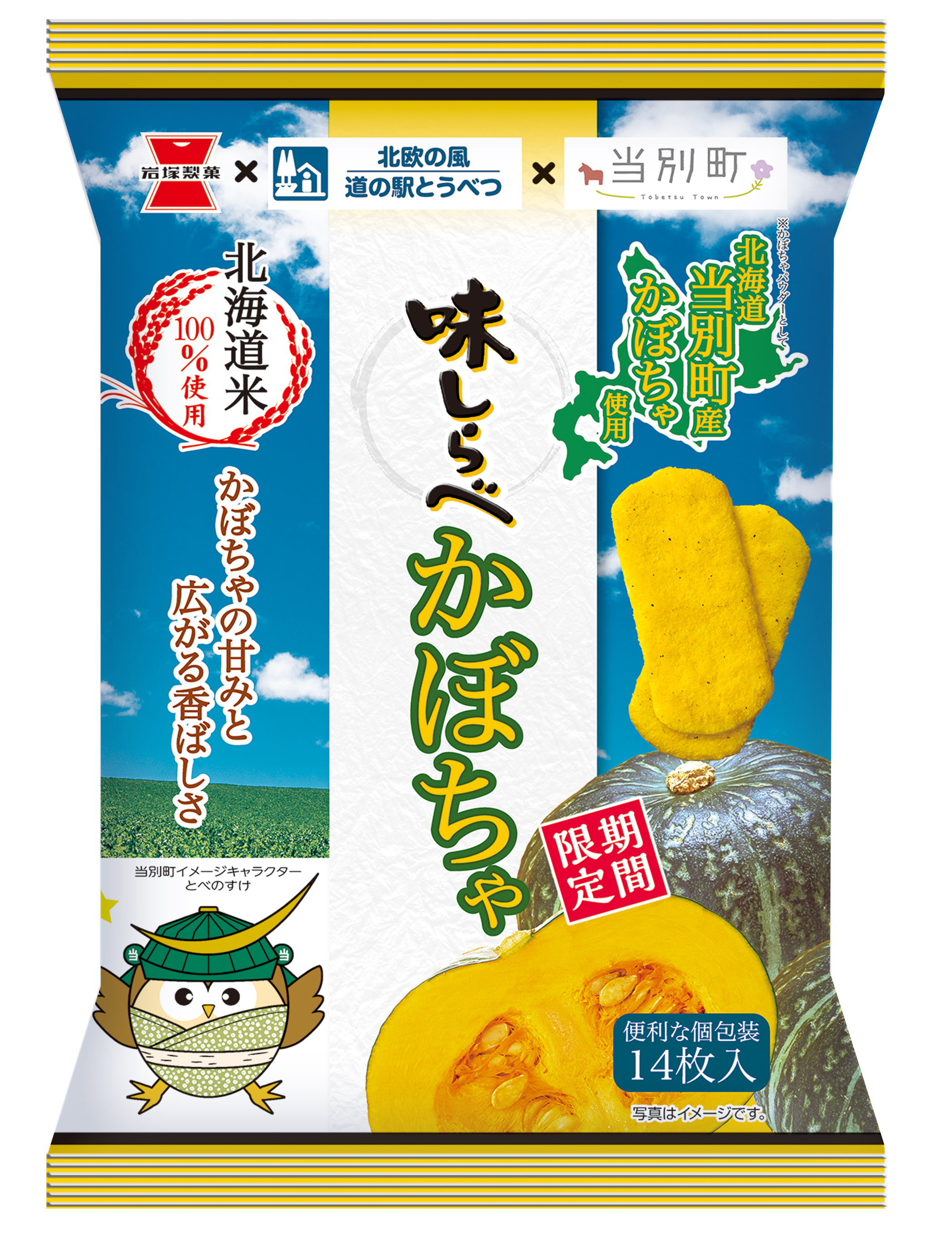 このたび北海道支社の地域創生取組に於いて、石狩郡当別町の将来に向けた農業政策として農作物の特産化を目標に強化品目である「かぼちゃ」(規格外)を活用し、岩塚製菓㈱様北海道工場ご協力のもとで商品開発を行い、石狩郡当別町 道の駅とうべつ運営会社である地域商社㈱tobe様、当社の思いがひとつになった新商品を発売いたします。