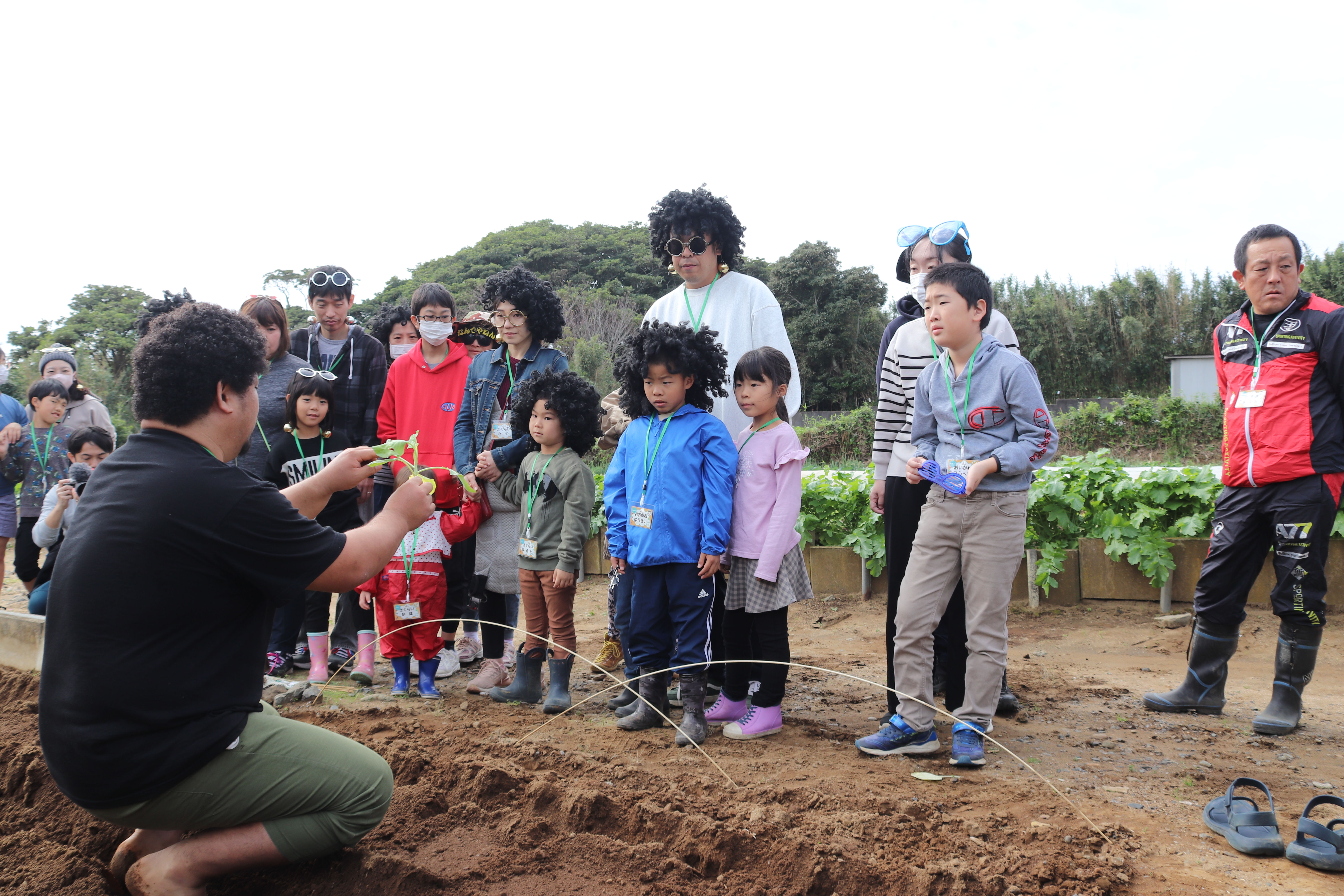 農場では、“Party!”らしく、参加者は坂尾様トレードマークのアフロヘアに扮して入場し、キャベツについてのお話しから始まり、苗摘みから苗植えまで、約80分をかけて体験いただき、その後は皆さんで楽しく 手作りおにぎり などの昼食を楽しみながら、第2回に向けて関係を深めました。