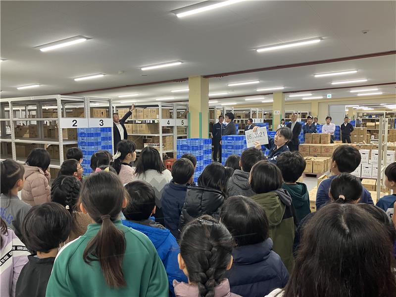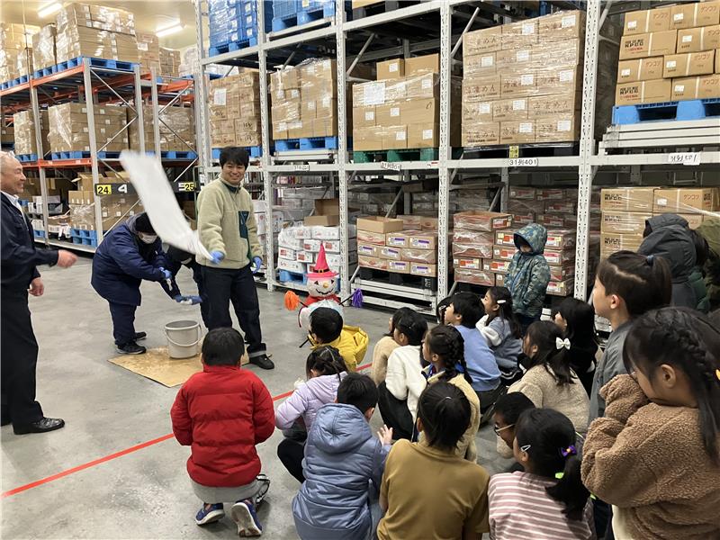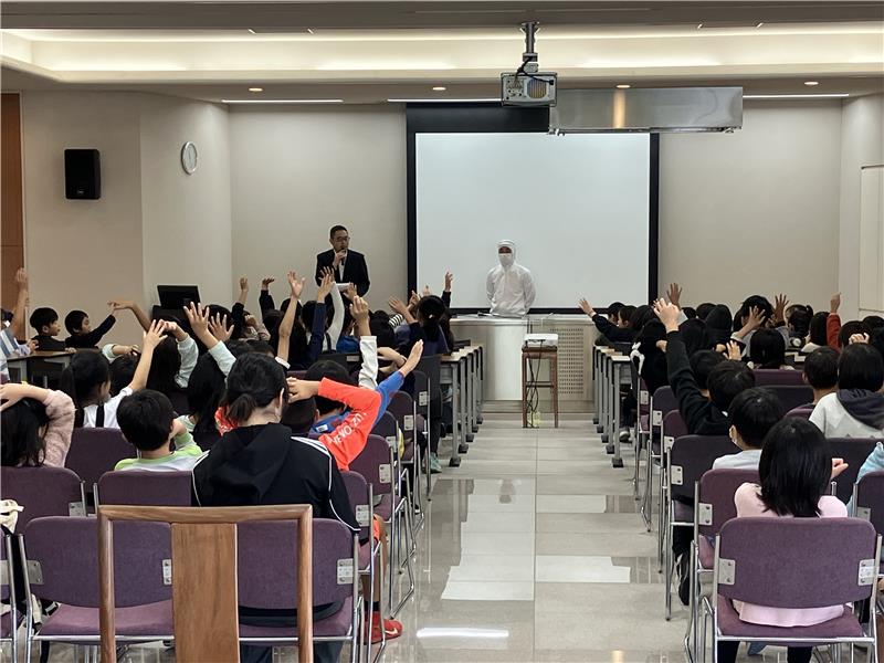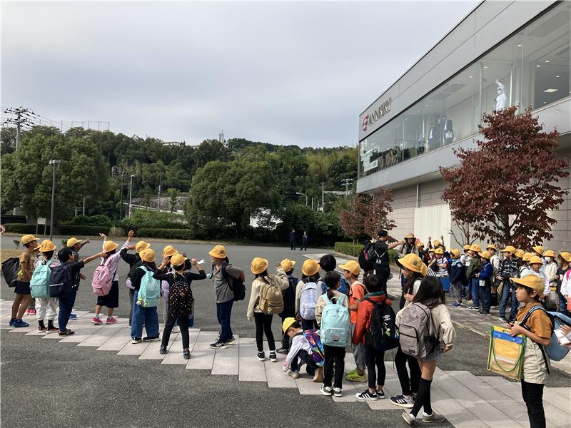 今年も、当社子会社であるアンキッキ協栄株式会社(大阪府茨木市)に、近隣の茨木市立山手台小学校3年生118人が社会見学にやって来ました。