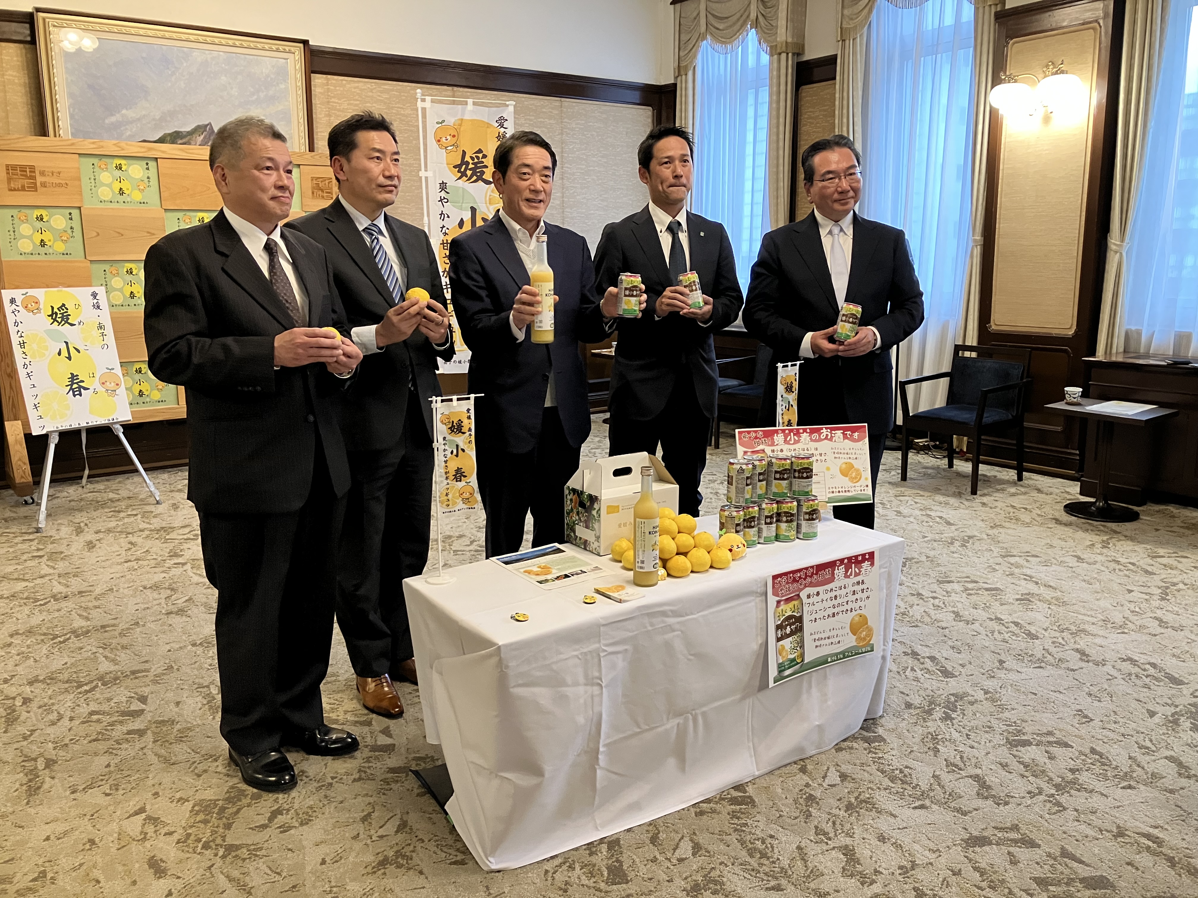 開発した「媛小春サワー」を試飲された中村知事からは「媛小春のおいしさが詰まっていて美味しい」とのコメントを頂戴しました。