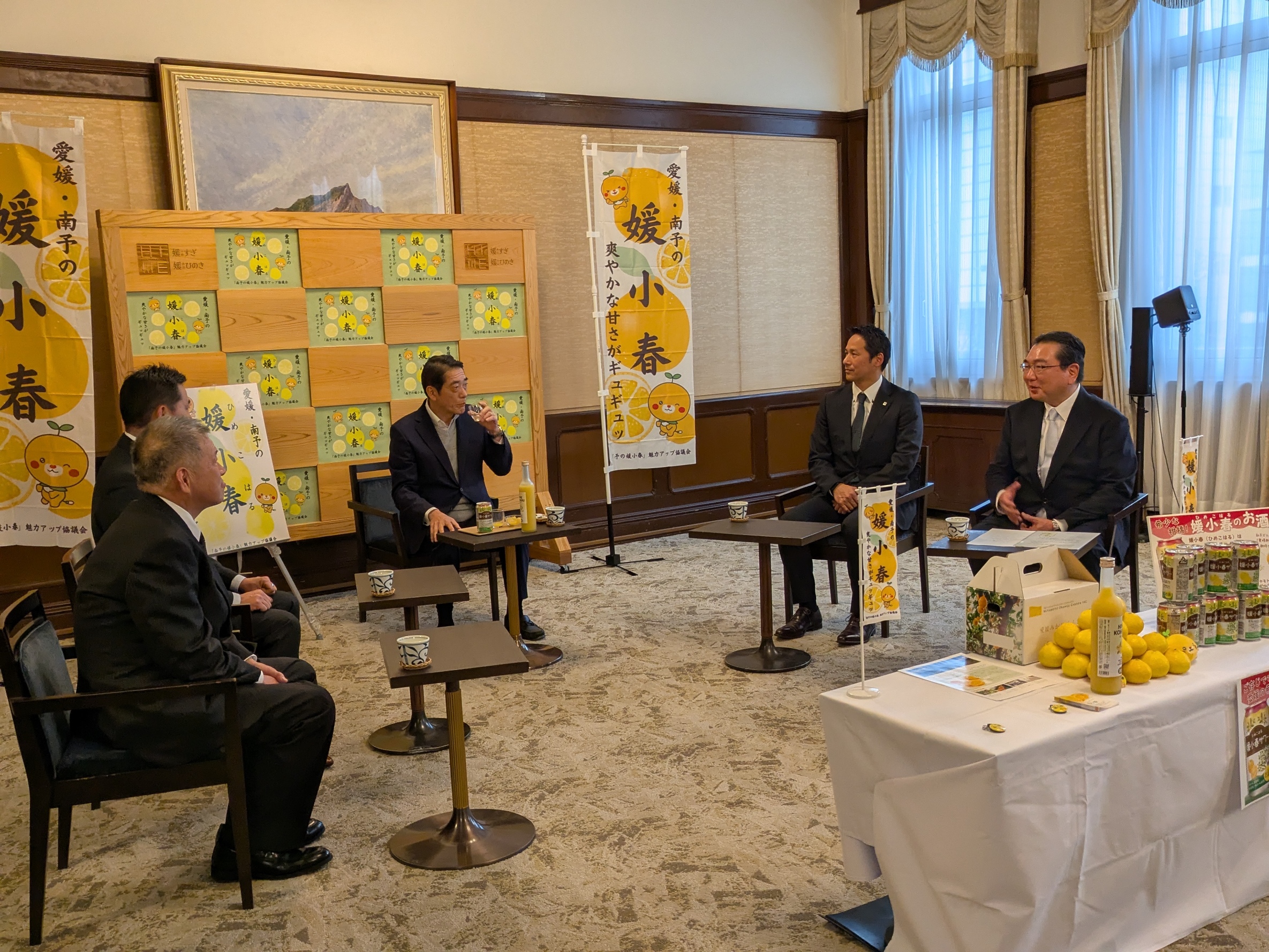 2025年3月6日(木)には、中村愛媛県知事を表敬訪問し、このたびの開発経緯や取り組みについてご報告いたしました。