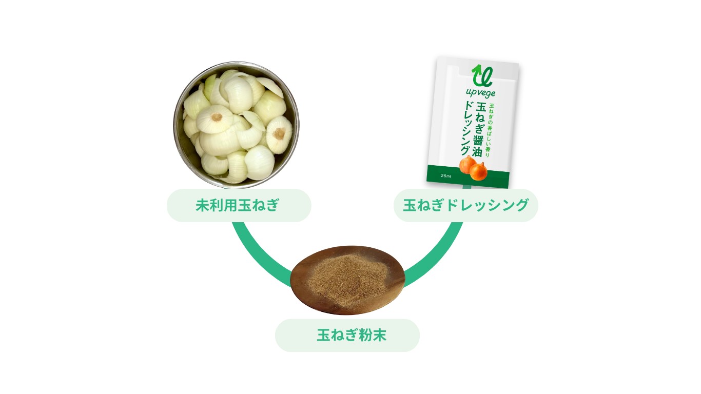 今回開発した「玉ねぎ醤油ドレッシング」は、カット野菜工場での加工過程で発生する未利用部分の玉ねぎをアップサイクルした商品です。