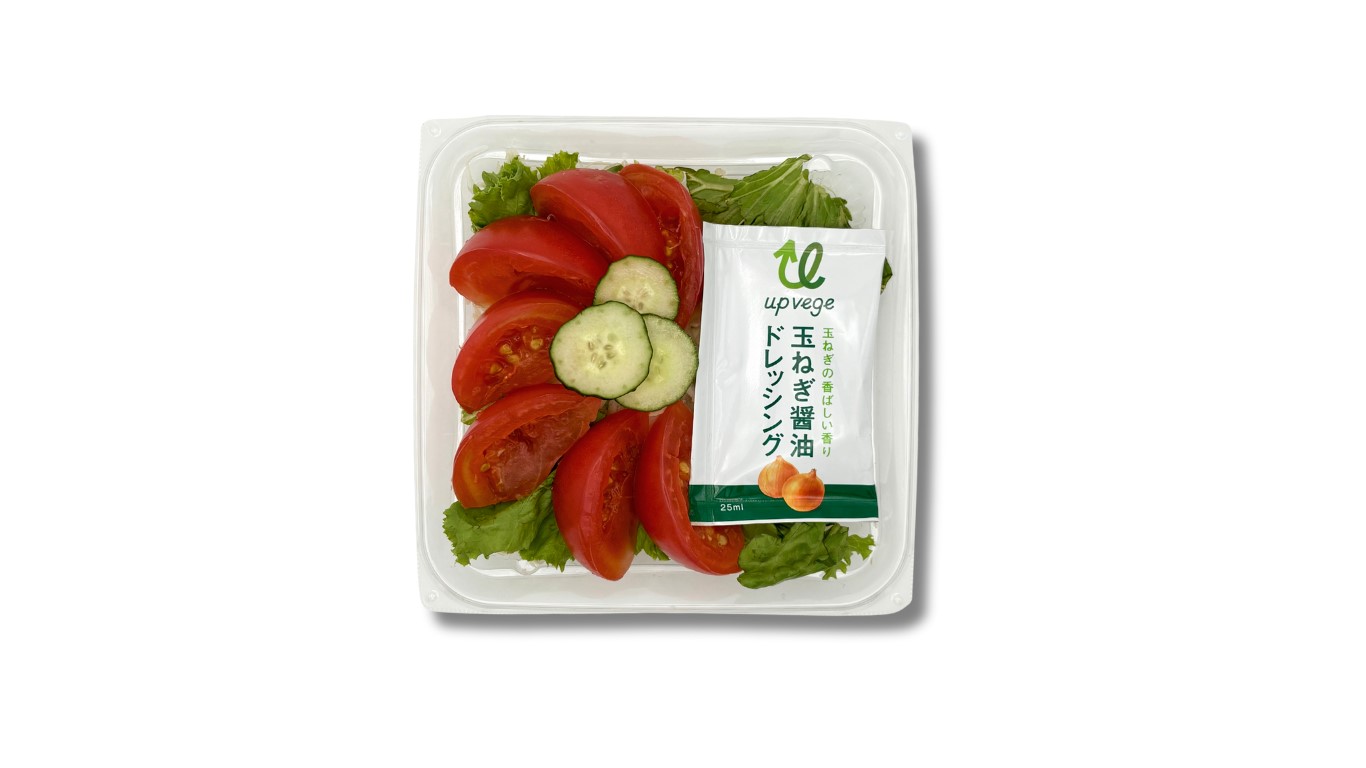 トマトサラダに今回開発したドレッシングを添付。既存商品の魅力をさらに引き立てる一品となっております。