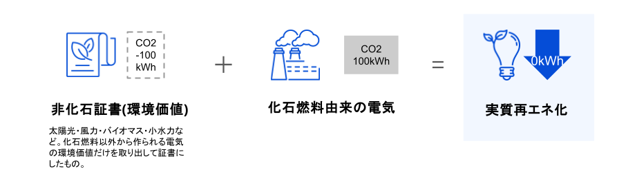 非化石証書の導入により実質再エネ100%へ