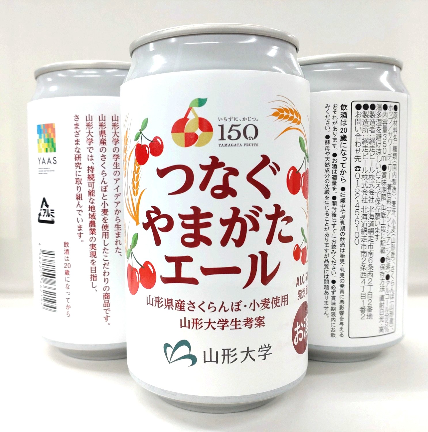 当社は、国立大学法人山形大学(以下山形大学)、株式会社ヤマザワ(以下ヤマザワ)と共同開発したクラフトビールを、2025年12月1日から山形県および宮城県内のヤマザワ店舗で販売いたします。今回発売する「つなぐ やまがた エール」は、山形県が実施する「やまがた ローカル・フード・プロジェクト(現YFP*¹)」に参加した企業・団体のつながりの中で誕生した商品です。当社の地域創生の取り組みに山形大学、ヤマザワ、そして山形県に賛同いただき、山形大学農学部の学生がコンセプトからパッケージデザインまでを考案したクラフトビールを当社が具現化し、商品化したものです。第一弾となる今回は、山形県産のさくらんぼ(紅さやか)と小麦を使用したクラフトビールを発売いたします。