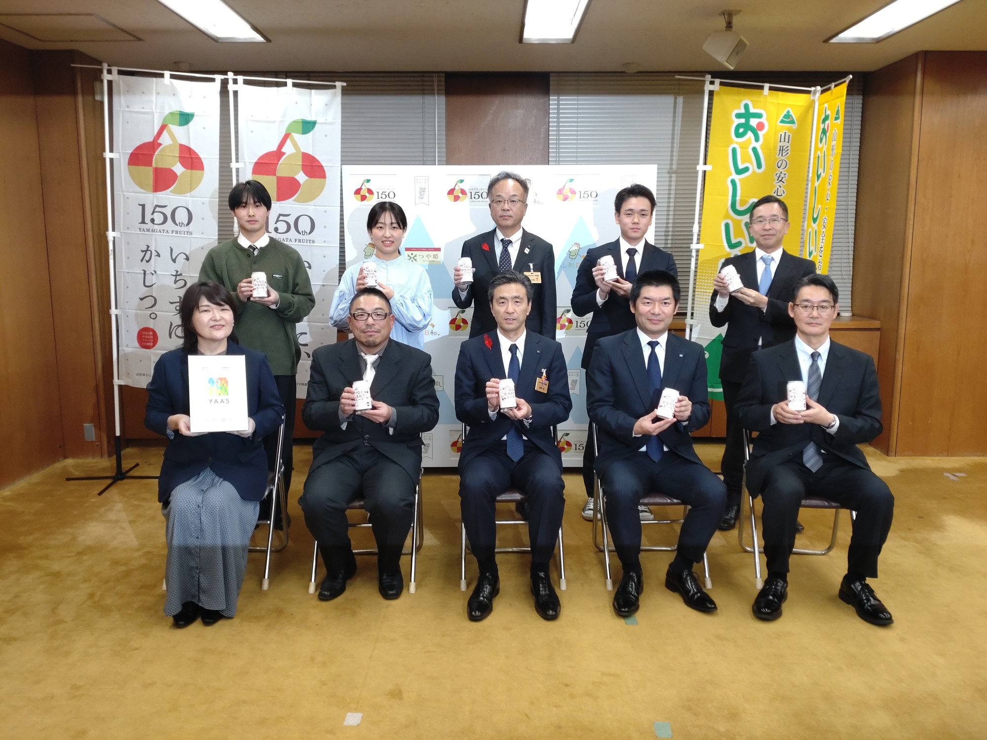 2025年11月25日(火)、開発に携わった関係者が山形県庁に集まり、髙橋副知事へ、今回の開発経緯や取り組みについての報告をいたしました。